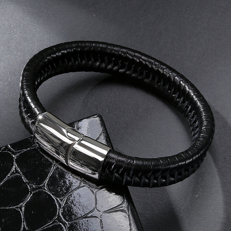 Leather Rope Stainless Steel Magnetic Bracelet